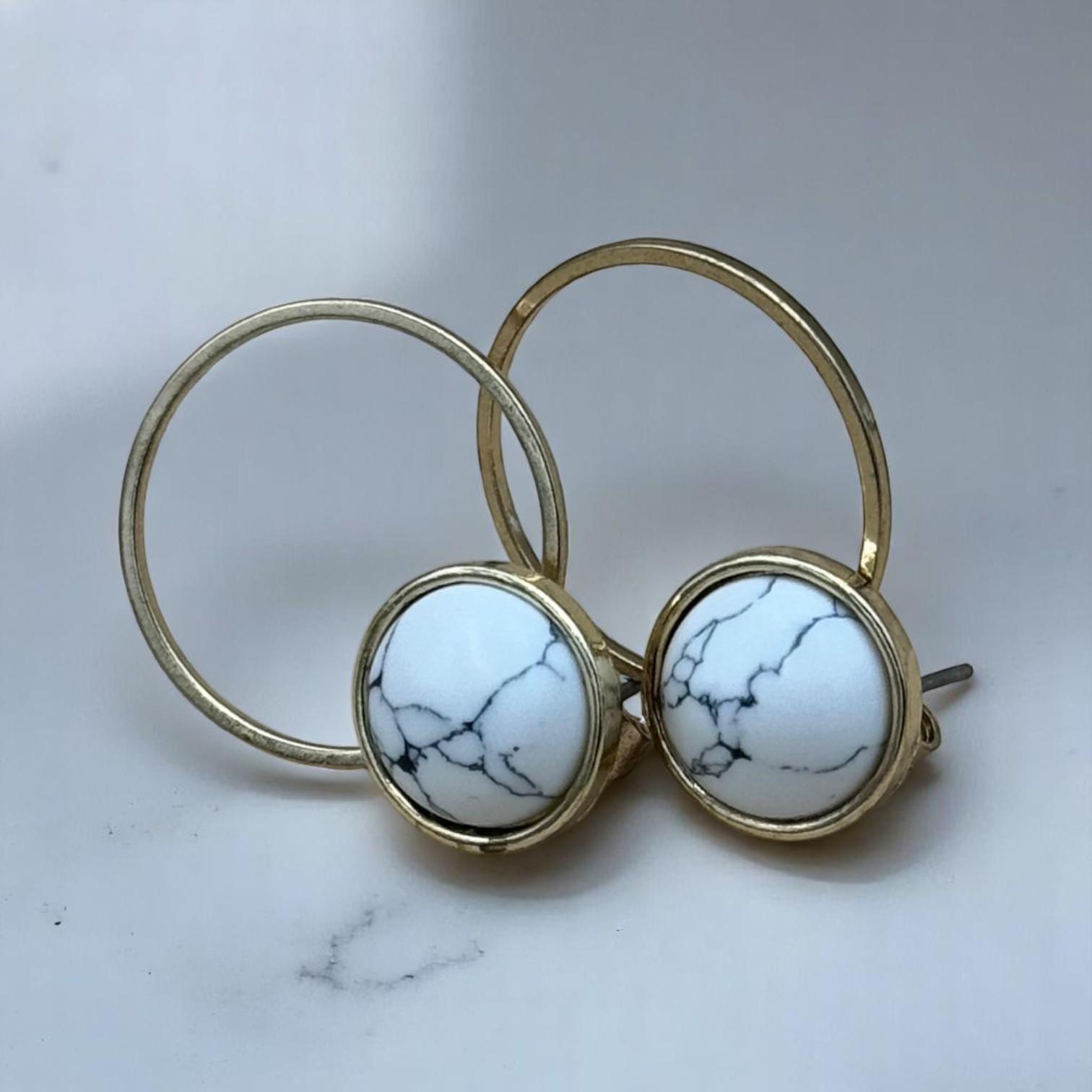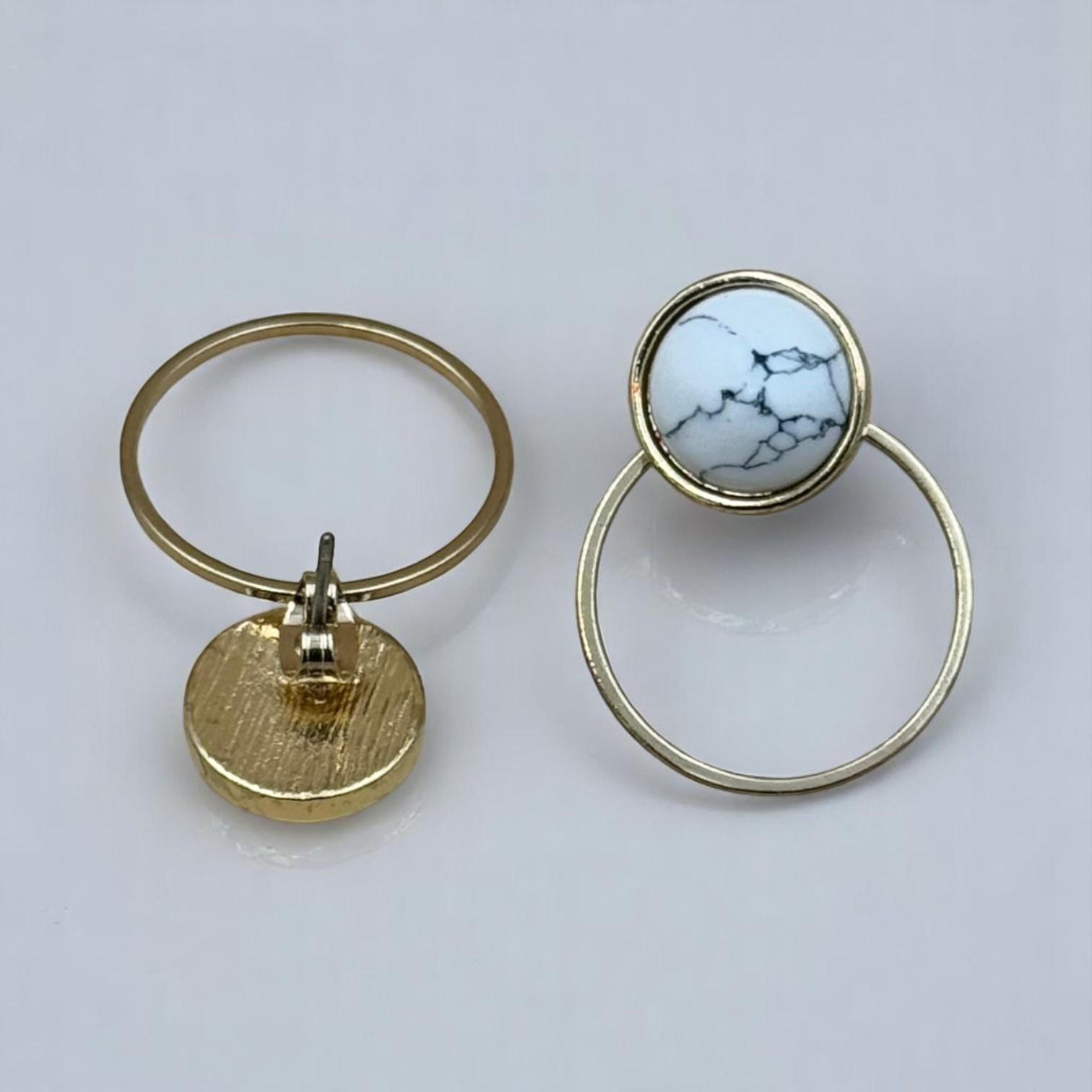 A smooth marbled stone sits suspended in a sleek gold ring, creating a floating effect that’s both minimal and eye-catching. Whether you’re dressing up for a night out or adding subtle sophistication to your daywear, these earrings deliver style with balance and grace.