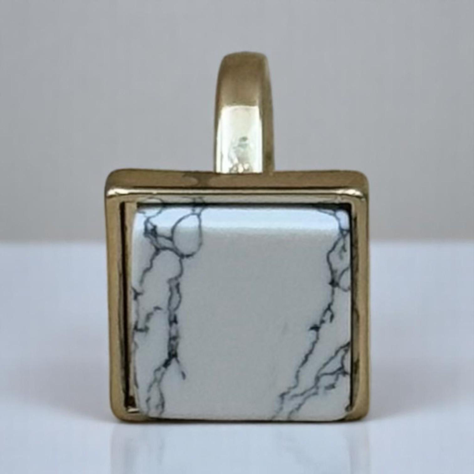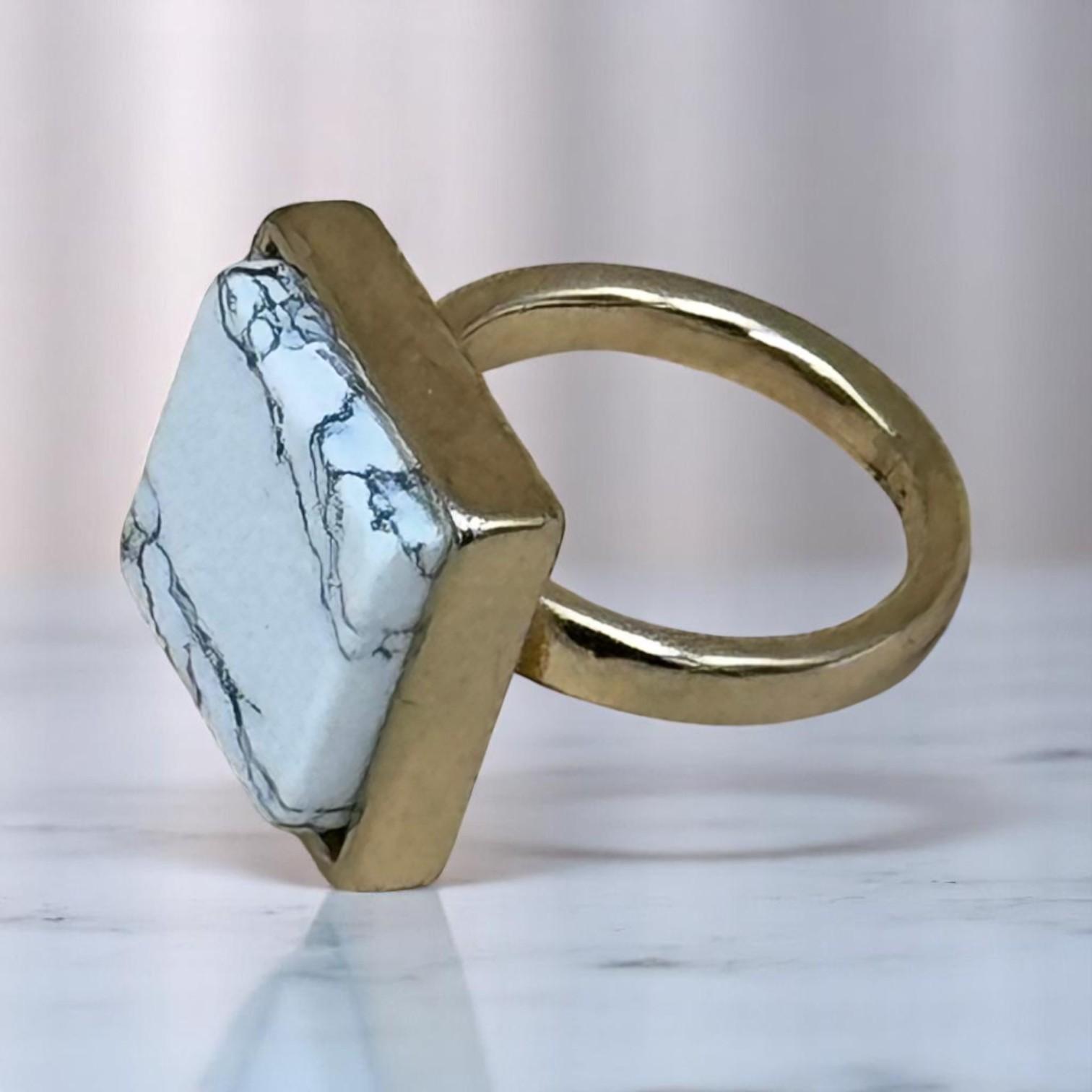 This ring features a square marbled stone set in a polished brass band, this ring adds instant sophistication and flair to your look. It’s perfect for the modern woman who appreciates clean lines, strong shapes, and standout details.