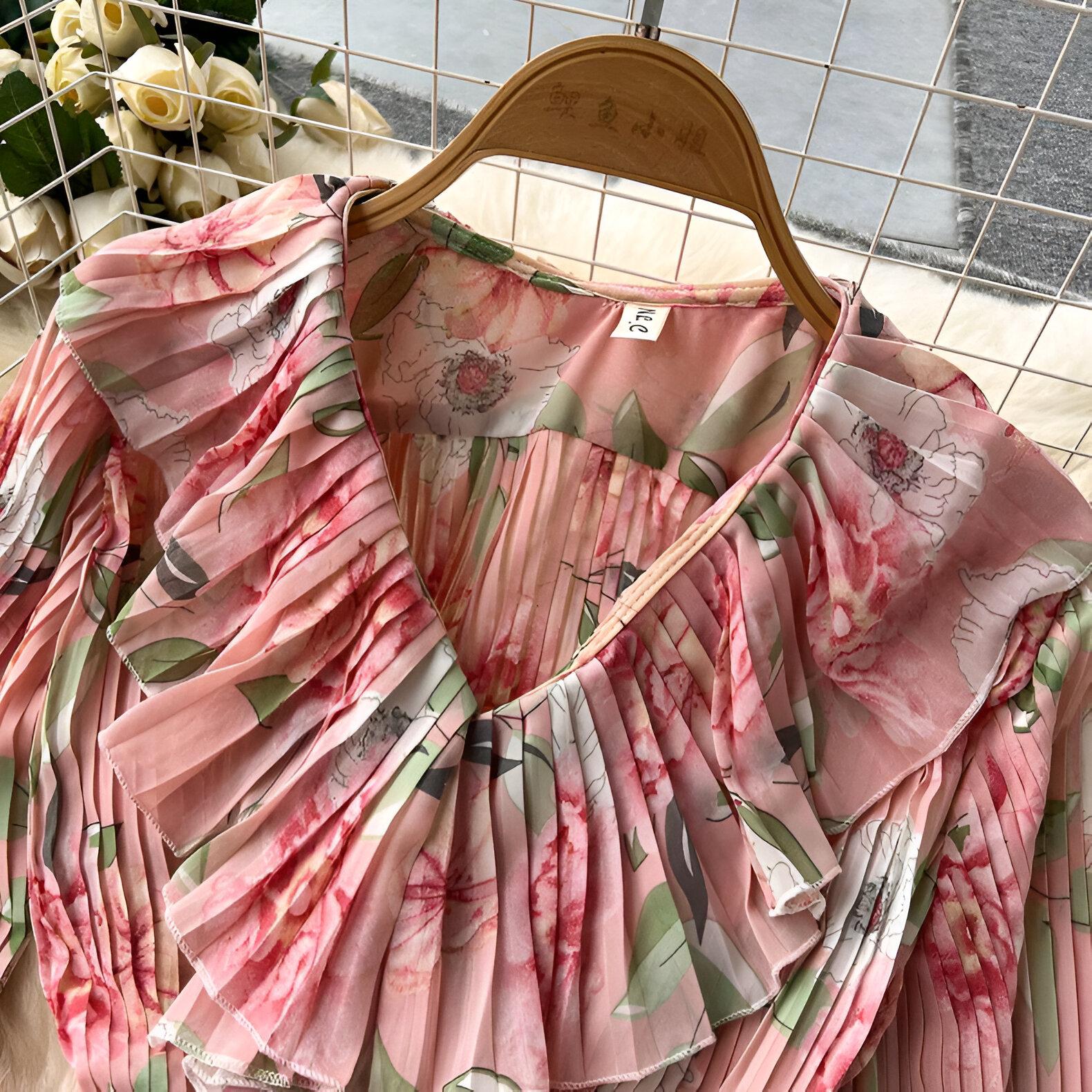 Effortless elegance with unparalleled comfort! This ruffled blouse and long skirt set with an elasticated waistband adds a touch of sophistication and femininity to your look. Featuring a charming floral print and a distinctive pleated design, this set is perfect for a variety of occasions, whether you're dazzling at a daytime meeting or a special evening out!