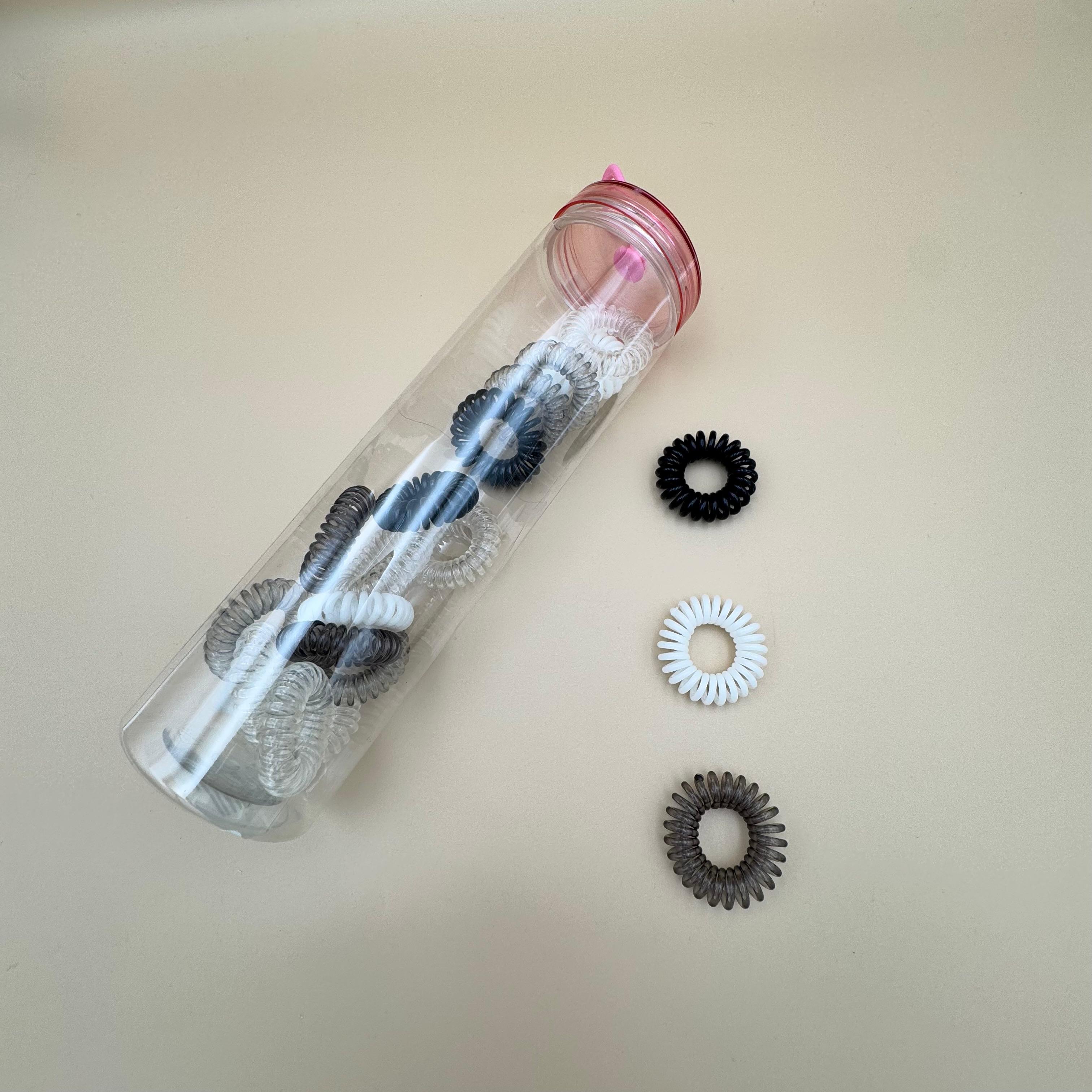 Tired of hair ties that cause frizz or slip easily? These spiral hair ties provide a smooth, firm grip without pulling. Suitable for all hair types—fine, curly, thick, or fine—they stay in place without causing damage. The set comes with a clear, reusable tube, making them easy to store and carry in your bag.
