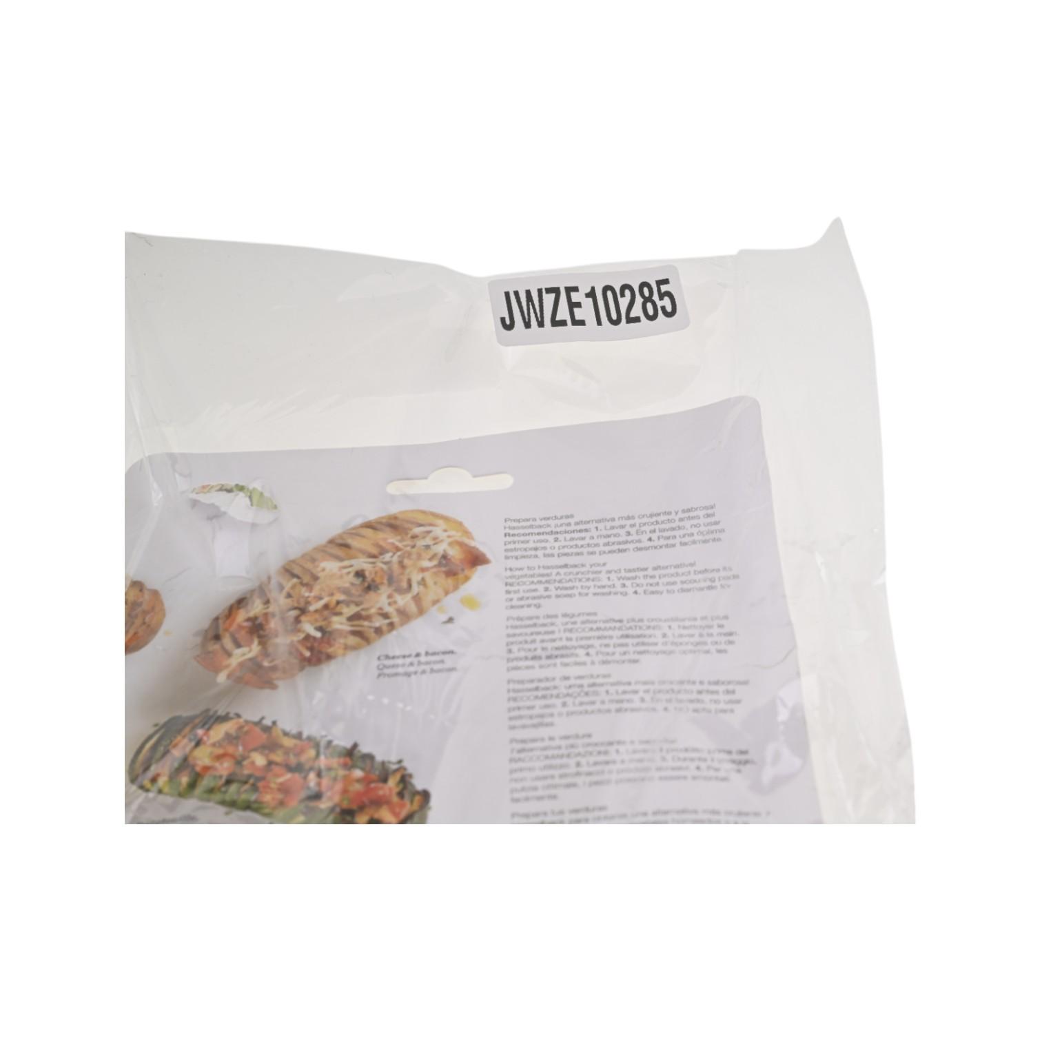 يُسهّل قطّاع الخضار على شكل هاسلباك إنشاء شرائح رقيقة ومتساوية تمامًا في الخضروات مثل البطاطس، مما يخلق النمط الشهير "هاسلباك". تسمح هذه التقنية بطهي أفضل وتقديم أجمل، مع حواف مقرمشة وداخل طري.