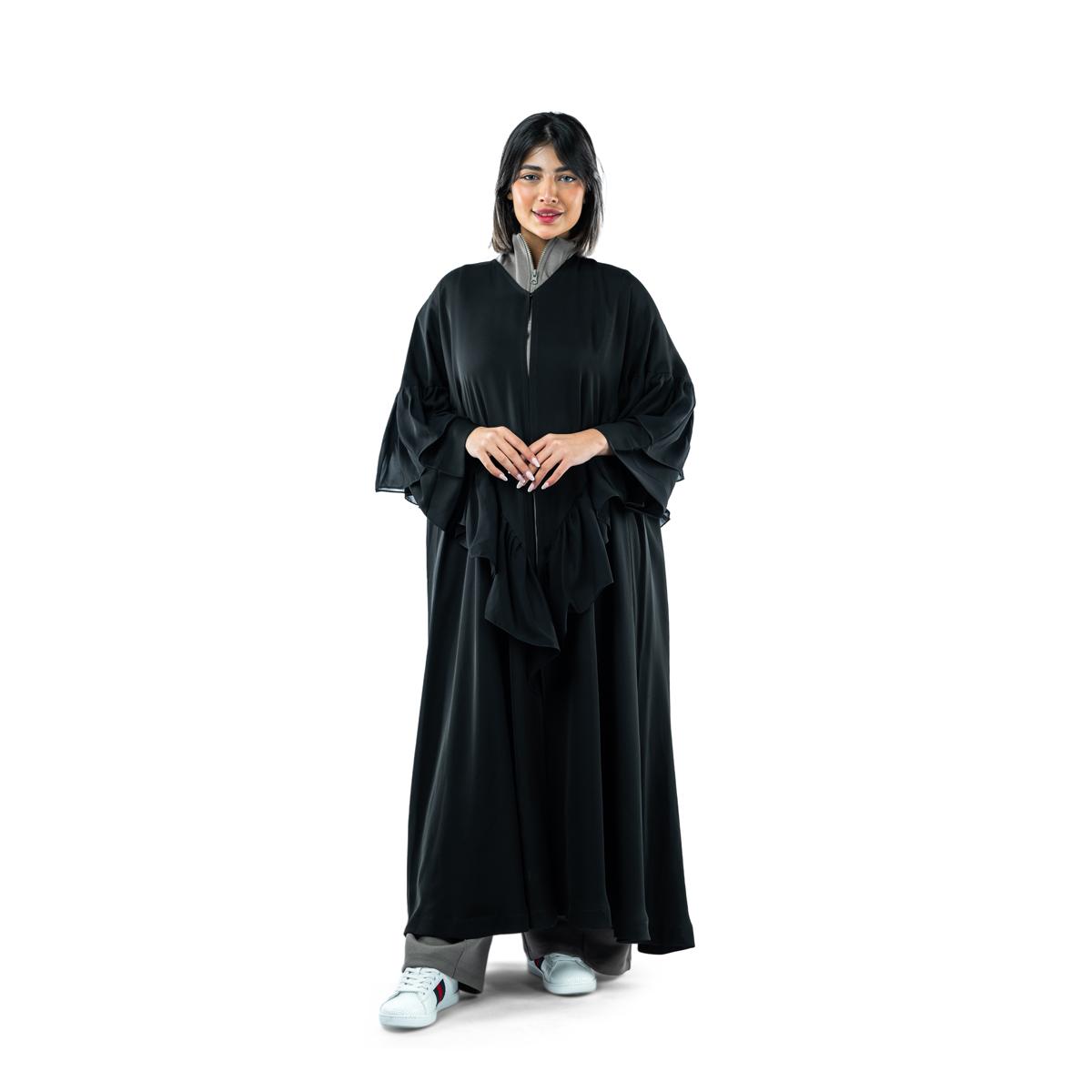 أضيفي لمسة من الفخامة إلى إطلالتك مع هذه العباية الرائعة المزينة بالكشكشة، التي تجمع بين الأناقة والرقي بكل انسيابية. يتميز ت، مما يمنحك مظهرا ملكيا ساحرا. مصنوعة من قماش ناعم وخفيف يضمن الراحة طوال اليوم، مما يجعلها مثالية للمناسبات الخاصة أو لإضافة لمسة راقية إلى إطلالتك اليومية.